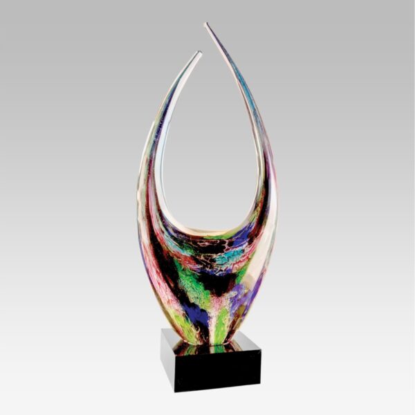 No two awards are the same! Each Art Glass piece is handmade blown glass, which means colors and sizes will vary slightly, and is mounted on a black glass base. In addition, every award is individually boxed in a lined gift box. Art Glass awards are truly one-of-a-kind and unbelievably beautiful in person! They contain intricate patterns and stunning colors that will wow any recipient.