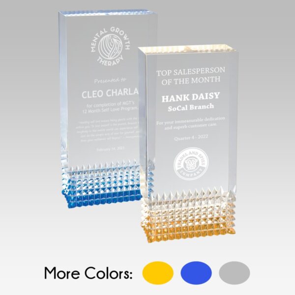You can never go wrong with a stunning acrylic award! Our Tribute Acrylic Award is a great option for a variety of award titles and recipients. Choose from our most popular sizes and colors. Additionally, add your logo for FREE!