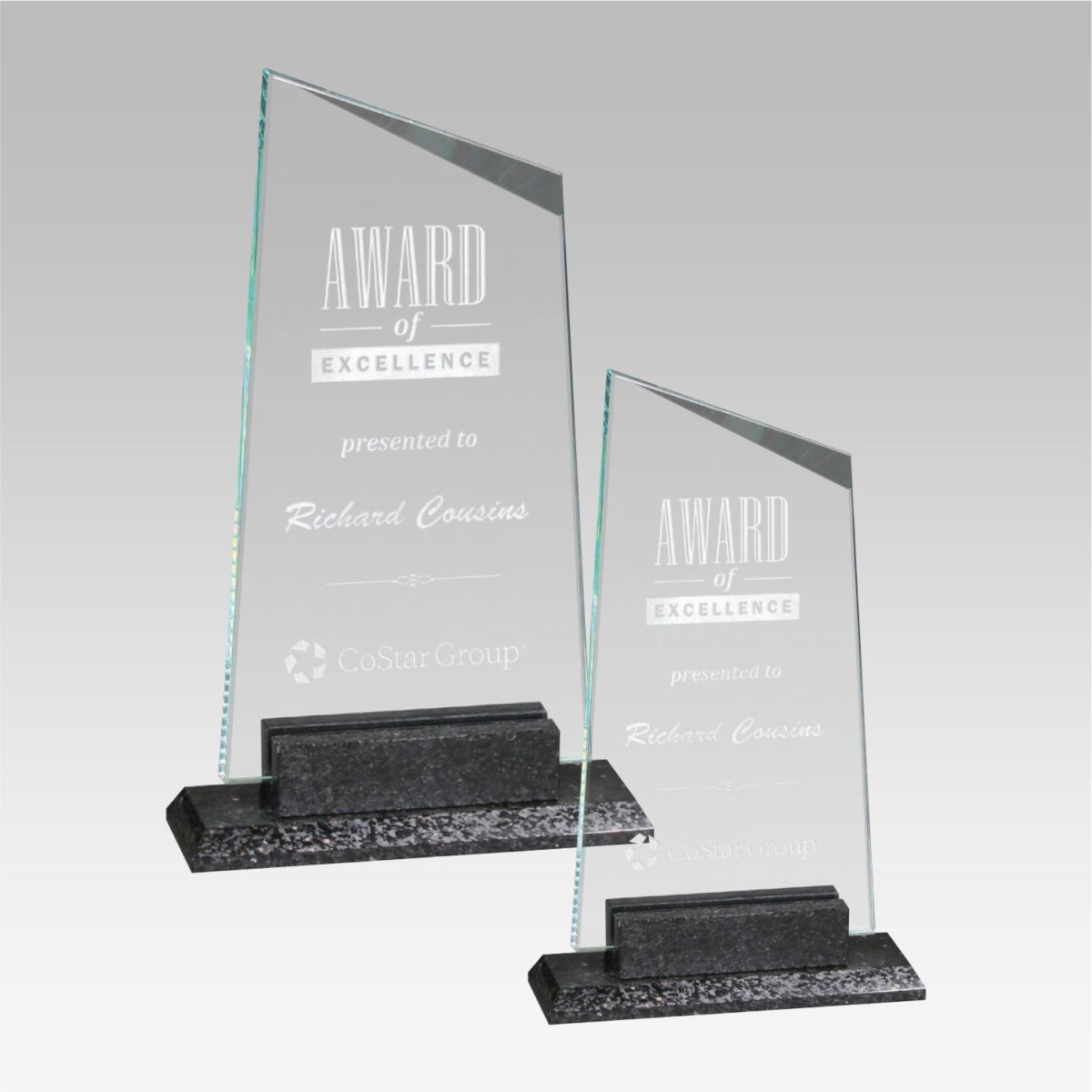 Glass Awards are fantastic for everything from corporate recognition to a heart-felt thank you gift. We love that Glass Awards are self-standing! They have the ability to be showcased on a desk or bookshelf, as opposed to hanging a traditional plaque on the wall. Many of our awards are available in multiple colors and sizes, making it a breeze to find the perfect award. Seeing is truly believing when it comes to Glass Awards! They are absolutely stunning in-person and shine at every angle.